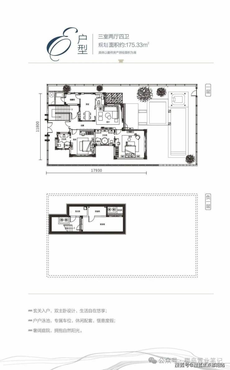 E户型:三室两厅四卫 / 规划面积约175 ㎡