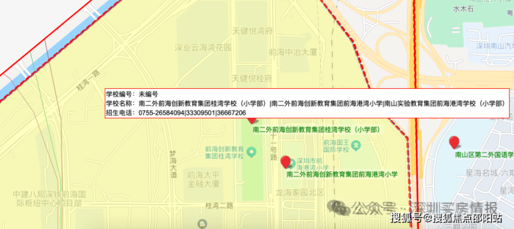 周边配套成熟完善,教育对口南二外前海创新教育集团桂湾学校(九年一贯制),普高率超85%,实现目送式教育;商业楼下有社区底商,周边有前海万象城、前海山姆会员店、卓越INTOWN等商业配套,车程约10分钟可达宝安中心区商圈,附近有前海社康中心,车程约15分钟可达南山医院、宝安人民医院等三甲医院;生态临近桂湾公园、前海石公园,步行可达,周边还有前海运动公园等休闲场所,宜居属性拉满。