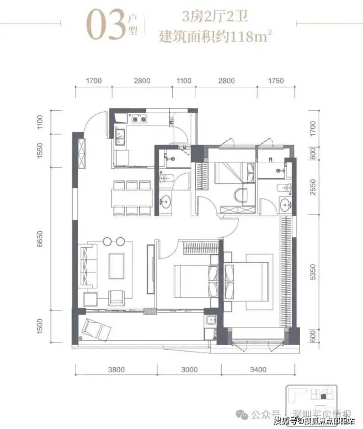 天健悦桂府主力户型覆盖刚需至刚改,主力户型为116-118㎡三房、162㎡四房,得房率约75%-85%,户型设计注重采光与空间利用率,部分户型有南向大阳台。户型遵循深圳新规设计,得房率高达94%-96.9%,部分户型可灵活改造,适配三口之家、多孩家庭等多元居住需求。