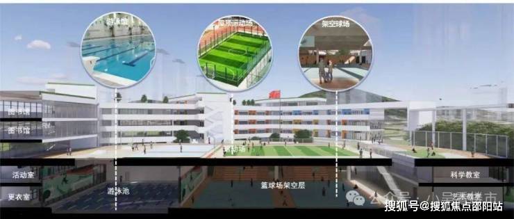 在学校设计上,越秀·天河·和樾府也做了创新,由教育产品大师操刀设计,依托项目场地原生榕树群,打造广州领先的榕树下立体校园里的复合教育空间。通过将架空运动场与教学楼的形态抽象成山与燕,提炼出本项目设计概念——错落台地·展翅燕塘。