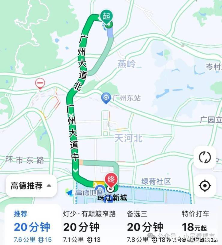 自驾去珠城:出小区怡新路转至广州大道北,再转黄埔大道西,全程7.6公里到达珠江新城,耗时20分钟左右。