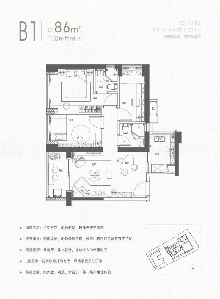 86㎡的3房2厅2卫,折后总价420-450万/套。