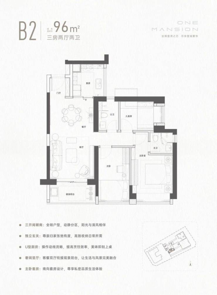 96㎡的3房2厅2卫,折后总价480-520万/套。