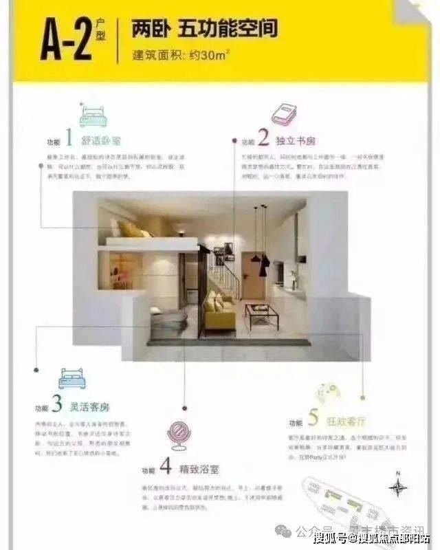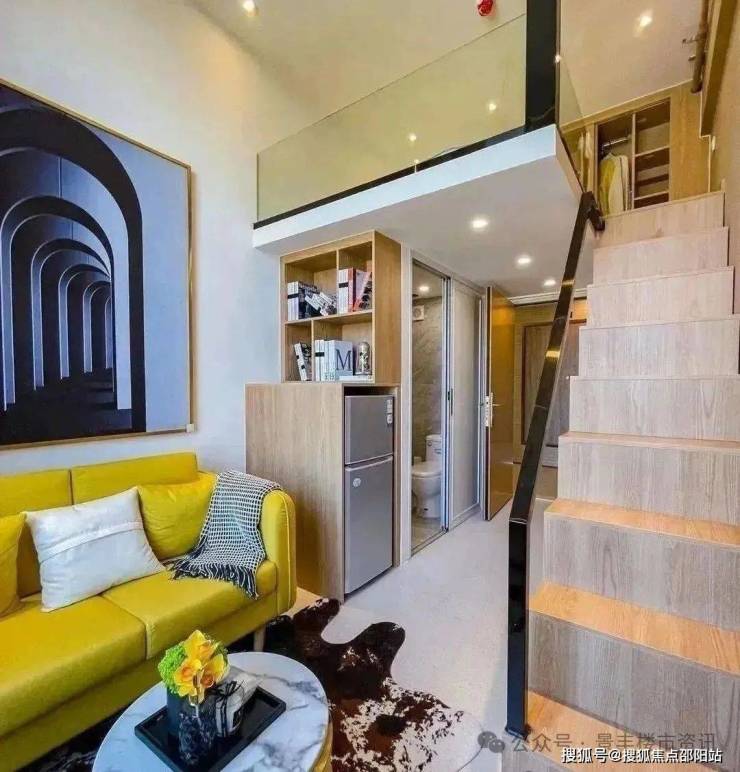 A-1户型品鉴:3.6米层高,单面采光,上下分层布局合理,收纳、起居、空间相对独立。较高的采光高度,足以满足室内自然光线的明亮,小阳台也可完全满足日常外界接触空间和晾晒的需求。