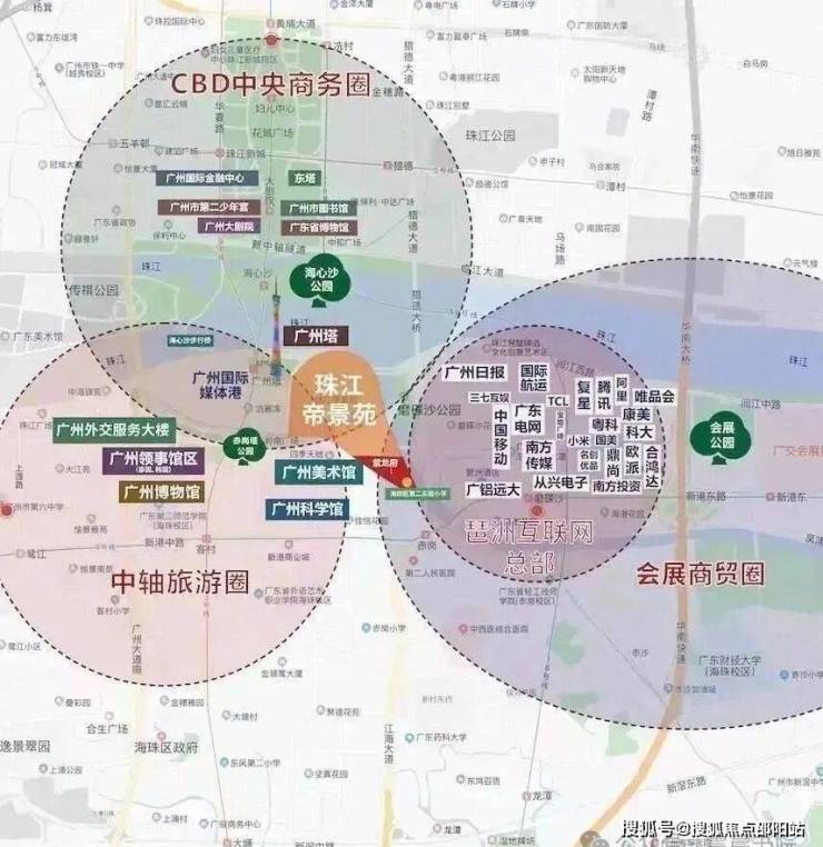 广州塔板块已成为最核心最被看好的区域,以广州塔为核心的新城市中轴线方圆一公里范围内,都是广州中心城区市政规划的重点区域,周边环绕三馆一场(美术馆、博物馆、科学馆、岭南广场、海心桥)、琶洲千亿级互联网CBD区(腾讯、阿里、复星、国美、小米等入驻)、珠江啤酒博物馆、广州报业文化广场、领事馆区、湿地公园等,形成独有的高端人文圈层。该板块资源稀缺,买少见少,地价一路飙升。