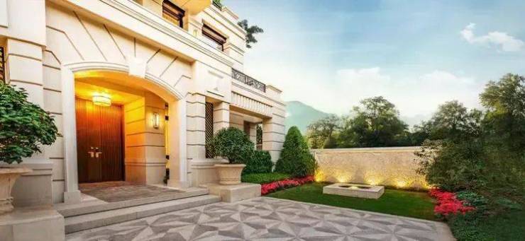 园林规划:定制新法式园林,整体作为“露天客厅”来打造,名贵树种全冠移植,优美花卉层次鲜明,兼具法国的理性与浪漫