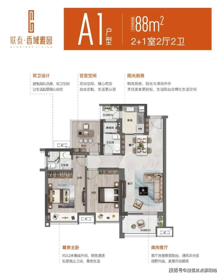联泰智慧升级人居——联泰·香域雅园,建面约88-115㎡全系高拓三至四房,两梯四户,户户朝南,成就超乎想象的空间排场,匠心缔造,让每一席都弥足珍贵。