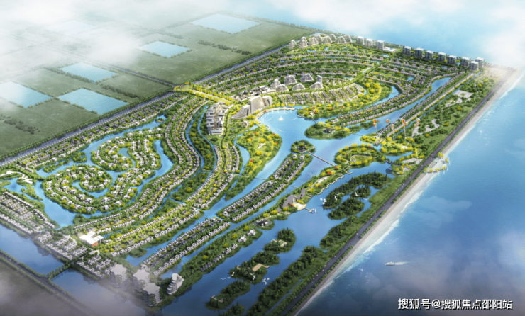 总用地面积233.33公顷,其中建设用地约为133.33公顷(合2000亩),约1500亩的带状肌理的湿地,如此自然天成的地理条件,设计师以华夏文化、水韵绿洲为资源本底,打造集旅游休闲度假、文化主题体验、滨海康养旅居为一体的顶级水岸诗意社区。场地规划一心一轴七组团,产品类型的多样,别墅面积段以105㎡、130㎡、170㎡、260㎡为主,沿地形带状布置,于景观开阔处搭配小面积段的公寓式住宅,将自然景观最大化的引入户内,场地中心设五星级酒店及商业街,为整个文旅项目提供完备的配套设施。