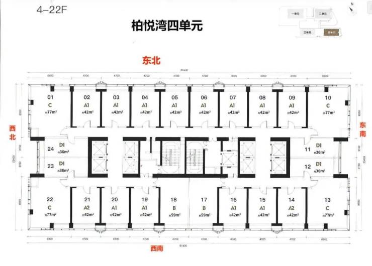 四单元公寓户型平面图