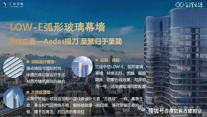 源系TOP级作品:云端地标 环幕视野0约208米云端地标,270°环幕视野,坐拥地标级城市景观与稀缺山水资源:2定制超白三层中空LOW-E曲面玻璃搭配横向铝板线条,标识性的超流线立面建筑
