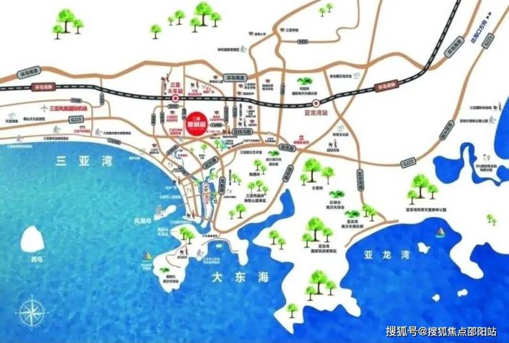 【交通配套】:地段绝佳,城市核心区。凤凰路的中段,项目与三亚湾直线距离4公里。5分钟可达三亚高铁站、10分钟可达三亚绕城高速、15分钟可达三亚凤凰国际机场。新修建的轻轨电车紧邻项目,步行3分钟即可到达凤凰路站乘坐。