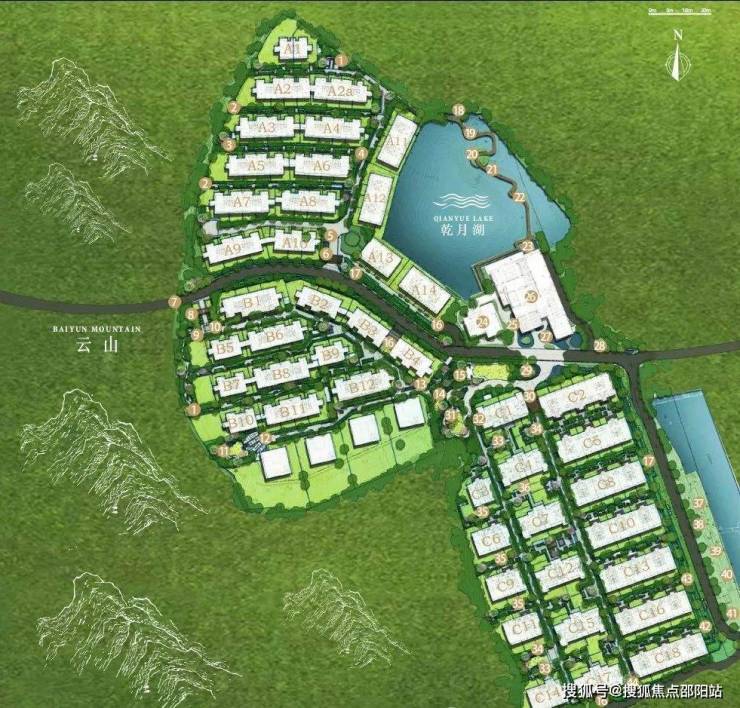 分为ABC三个住宅组团分期开发,其中A区为41套联排别墅和15套临湖别墅,B区为37套联排别墅,C区以叠墅为主少量平墅产品,共规划269户。