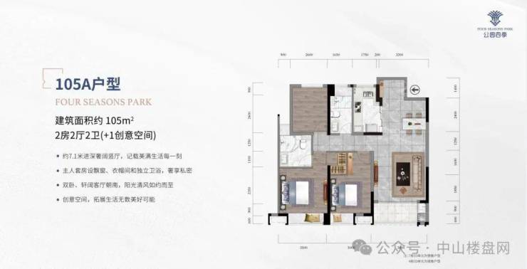 公园四季1期为南向纯板楼设计,楼间距开阔,在售90-143㎡户型;二期则为塔楼设计,性价比更高,在售95-115㎡户型。