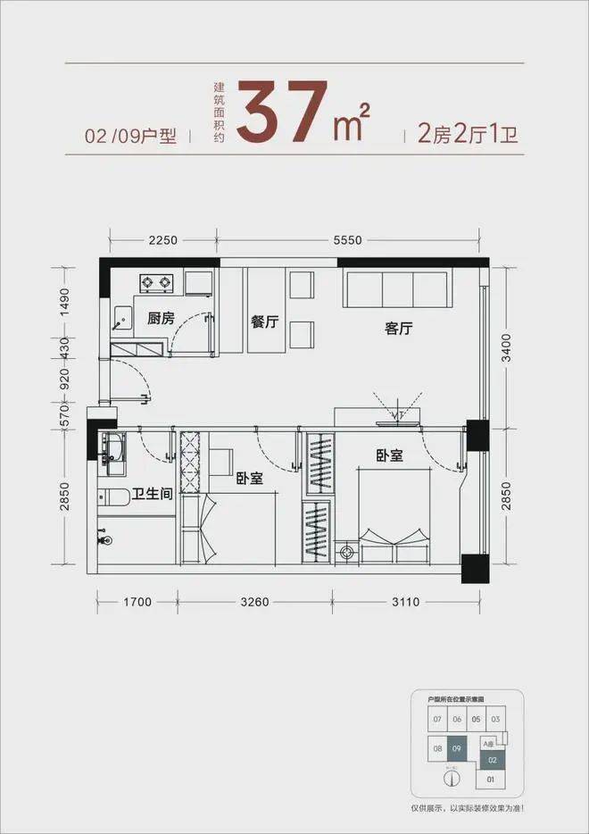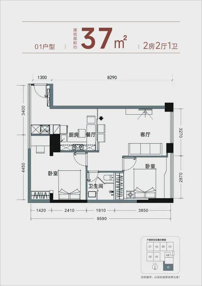 主力户型:约 37 平方米的稀缺精装 2 房,目前出售 6-8 层 24 户。