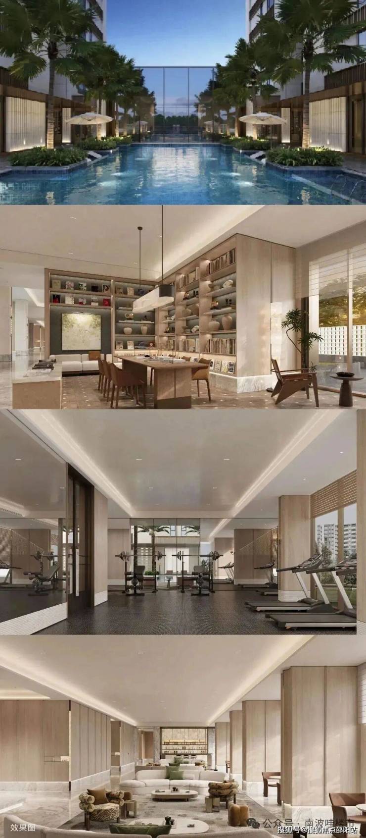 一楼配套逾1000㎡高端会所,涵盖有氧健身、无氧健身、瑜伽跳操室、泳池、咖啡吧、书吧、会客厅等功能,私享隐奢社交主场。