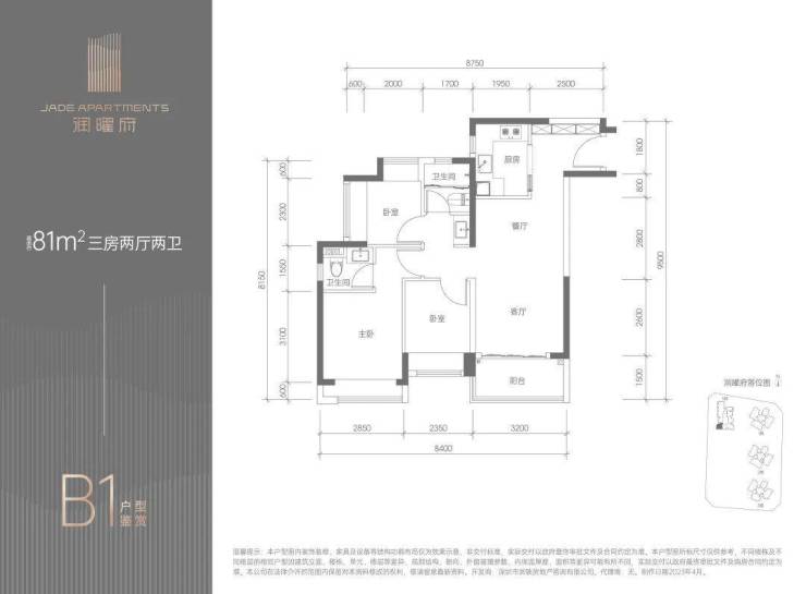 在售面积:69-95㎡2-3房,总价300万起