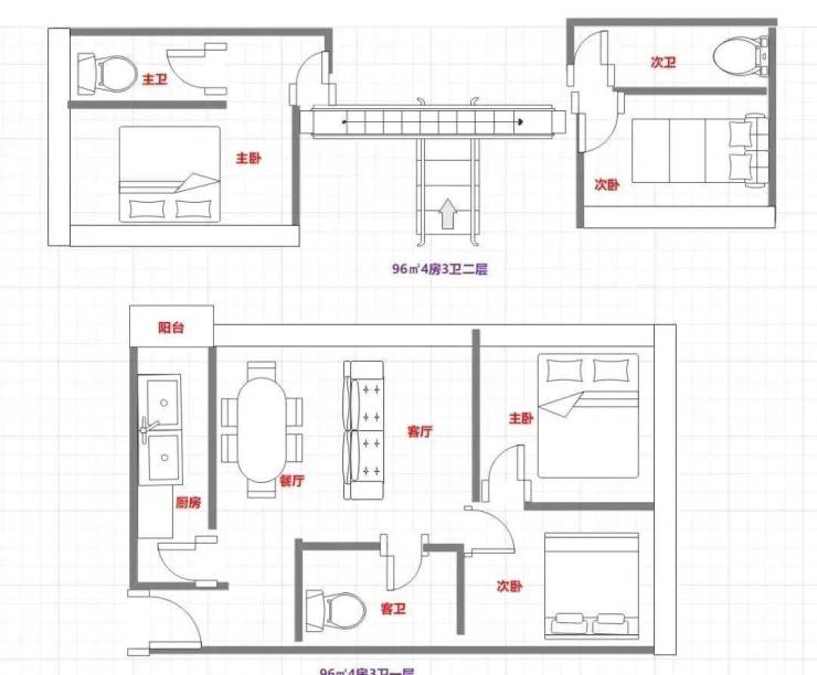96㎡4房3卫