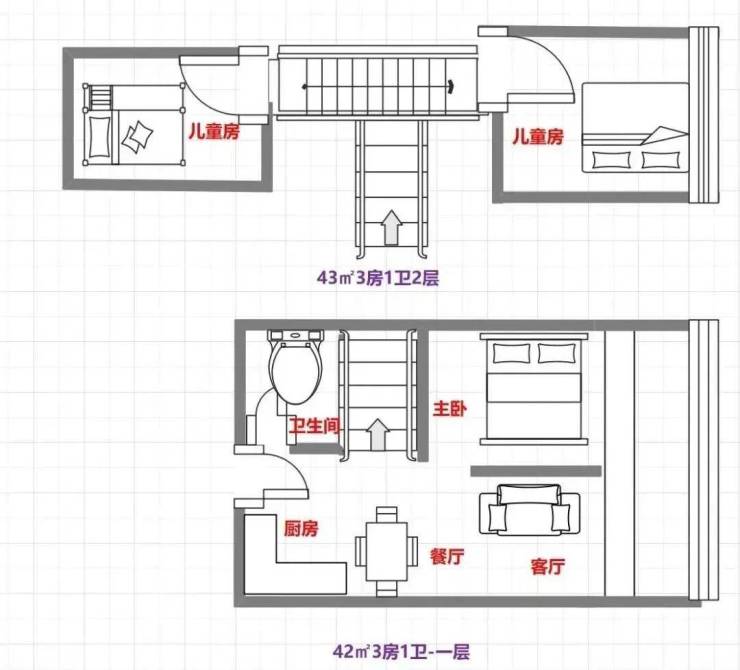 42㎡3房1卫户型图