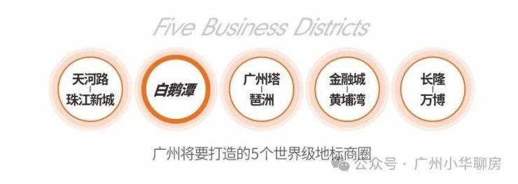 白鹅潭商务区:广州市重点培育的五大世界级地标商圈之一,规划面积达36平方公里,相当于6个珠江新城;