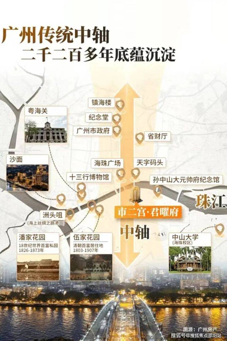 君曜府所在的市二宫板块,是很多老广心中的“白月光”。作为广州千年中轴与珠江前航道的交汇点、海珠区最早成熟的板块之一,这里曾是十三行时期的贸易核心与豪宅发源地,承载着广府文化底蕴与城市发展脉络。