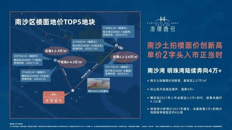 • 明珠湾大桥:预计2021年6月通车,项目西北侧南万大道过桥即达南沙湾(zui高楼面地价22700元/㎡,吹风直奔4万+)