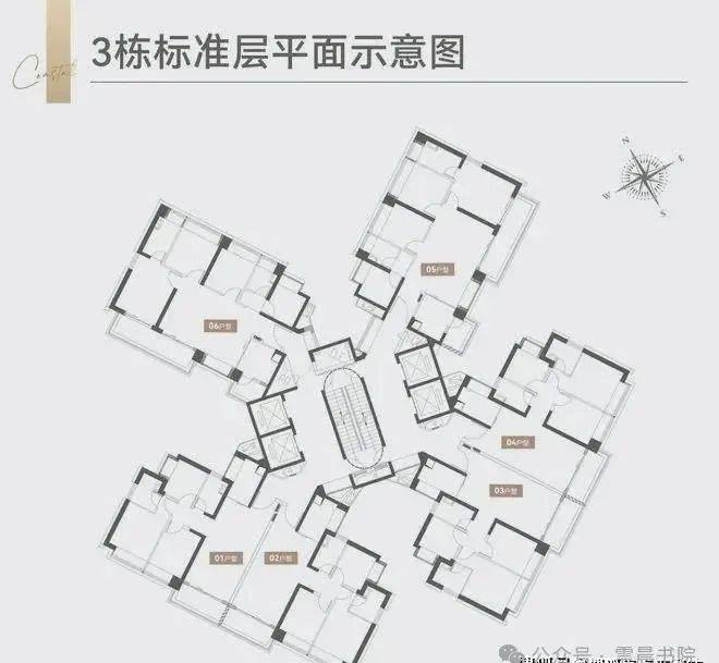 3栋:4梯6户,层高3.1米,01-04户型100平3房2卫,05-06户型120平4房2卫