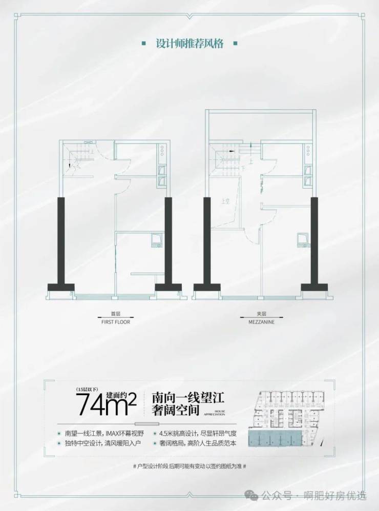 目前这边在售的面积段是36-74方,但是这边全部都是复式的设计,这样大大增加了面积的使用率,空间感比较好!