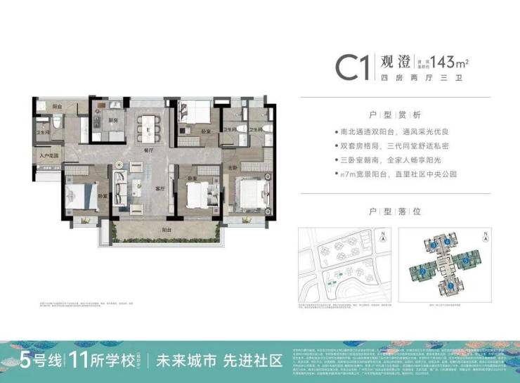 户型涵盖88-93㎡三房两卫,123、139、143四房两卫及四房三卫,但这边的使用率没有那么高,现楼