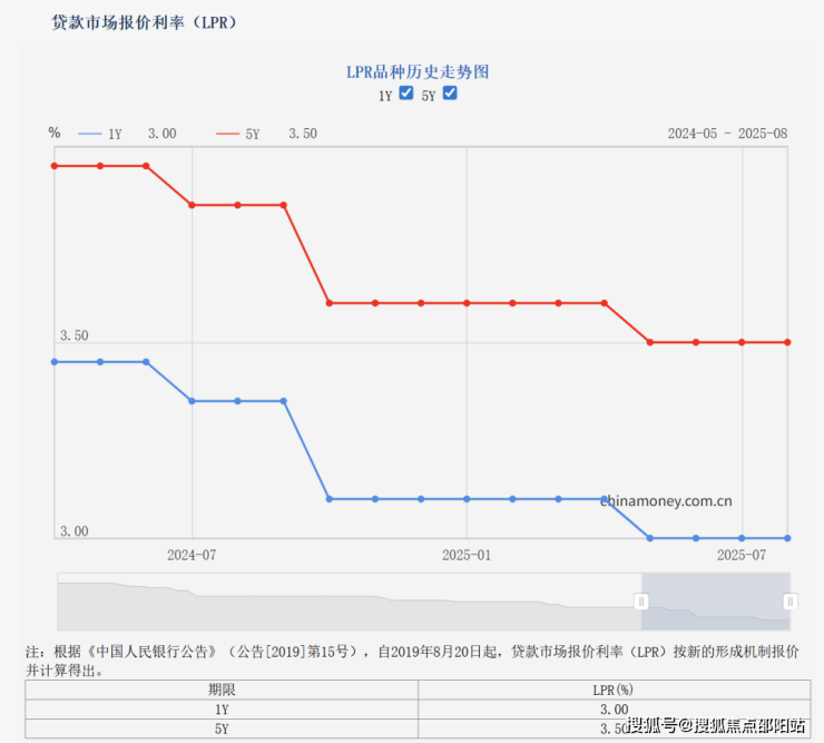 8月20日,中国人民银行授权全国银行间同业拆借中心公布,2025年8月20日贷款市场报价利率(LPR)为:1年期LPR为3.0%,5年期以上LPR为3.5%。以上LPR在下一次发布LPR之前有效。