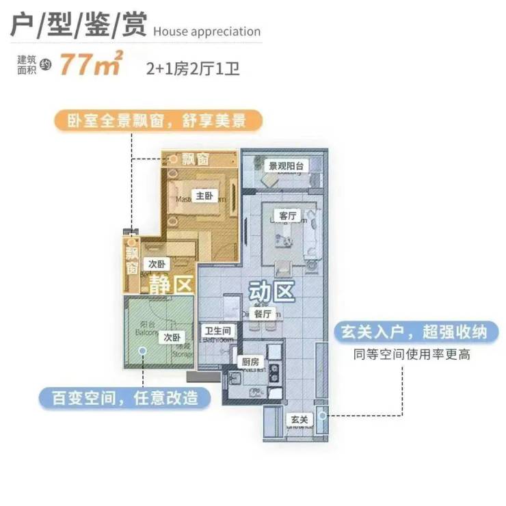建面约77m²高性价比阳光三房,高拓空间,同等面积更阔享受
