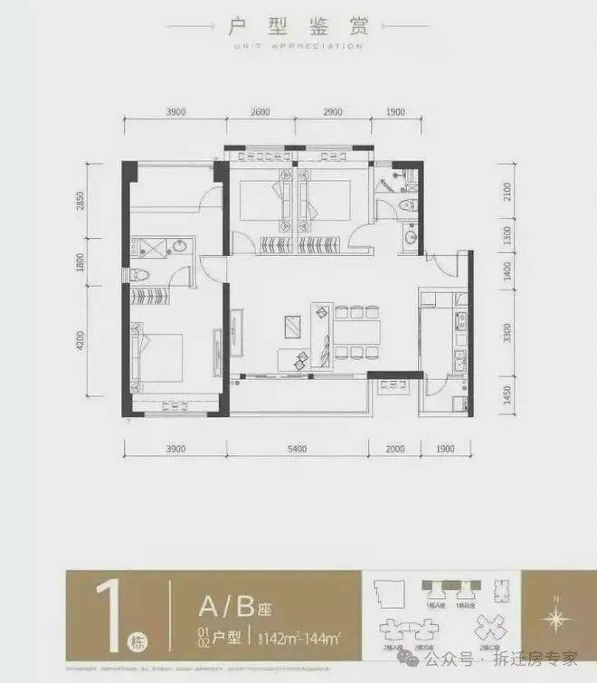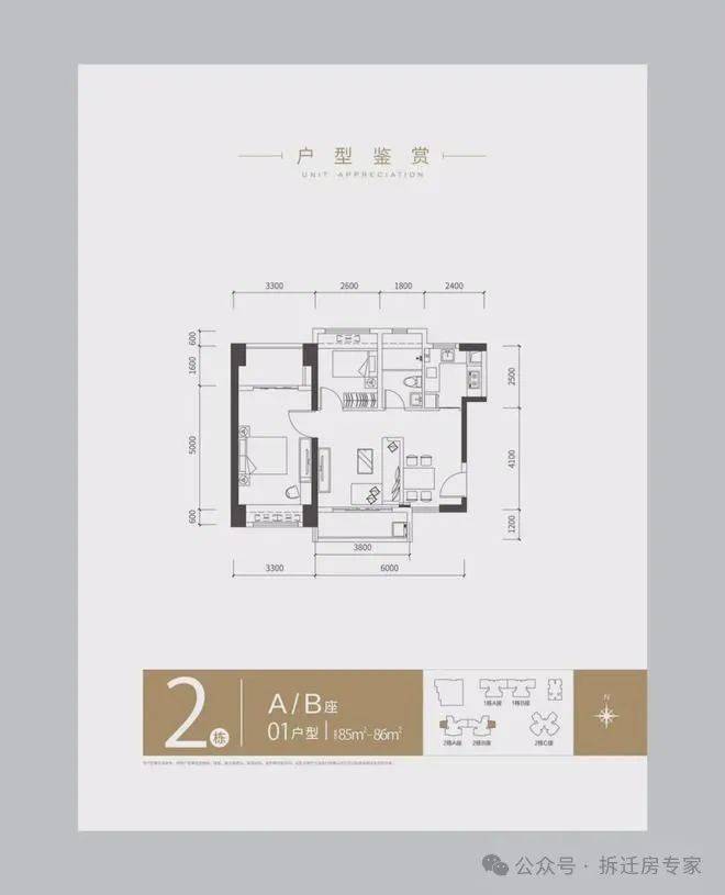 梯户比:1栋 3梯4户, 2AB栋 3梯5户, 2C栋 3梯6户