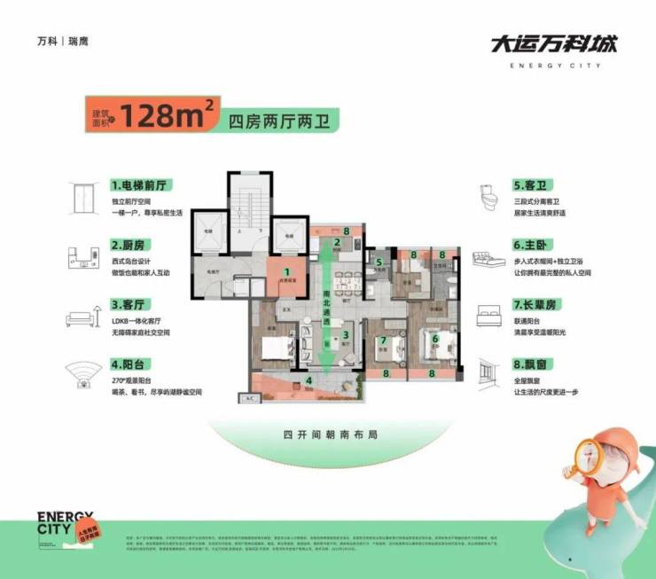 主力户型有4个,分别是80-100-128-143四个面积段,分别有: