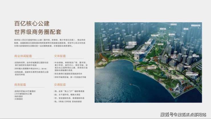 百亿核心公建,图书馆、体育馆、青少年宫等市级配套兑现,中央绿轴串联城中,形成引领大前海商务生活的一站式醇熟配套,尽享国际化商务便利