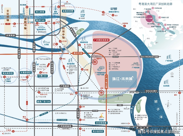 区域还拥有佛莞城轨(在建)、穗莞深城轨琶洲支线(在建)、以及8号线东延段(规划)、广中珠澳高铁(规划)三城轨,17号线(规划)双地铁。
