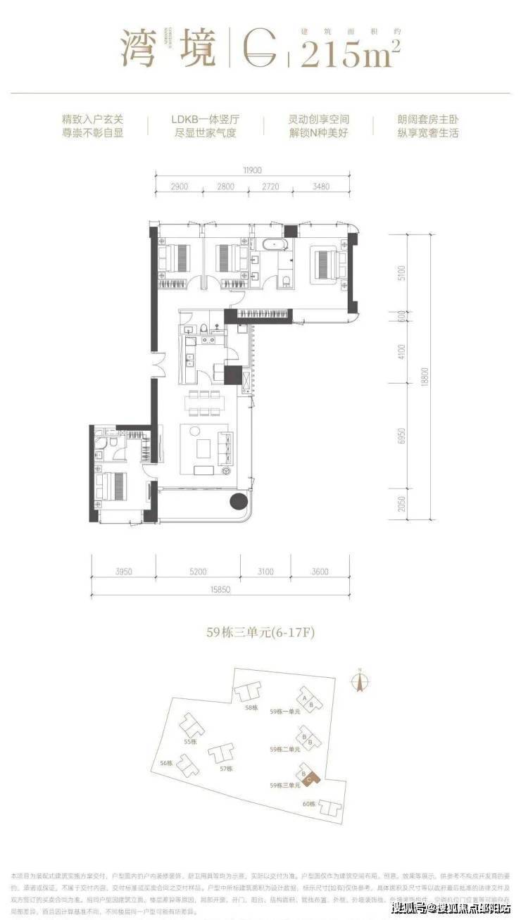 前海桂湾「前海时代尊府」取证加推最后大平层户型,为59栋的三个单元(59-1/2/3栋),面积约为215-255-295㎡,三梯两户,全南向景观,预计2026年交付。