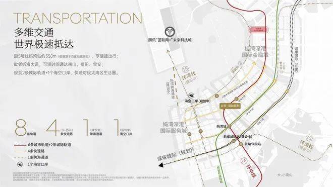 交通:距离5号线妈湾站约600米均,此外,将还有15、21、27、穗莞深城际等多条轨道交通串联前海与其他重点片区。