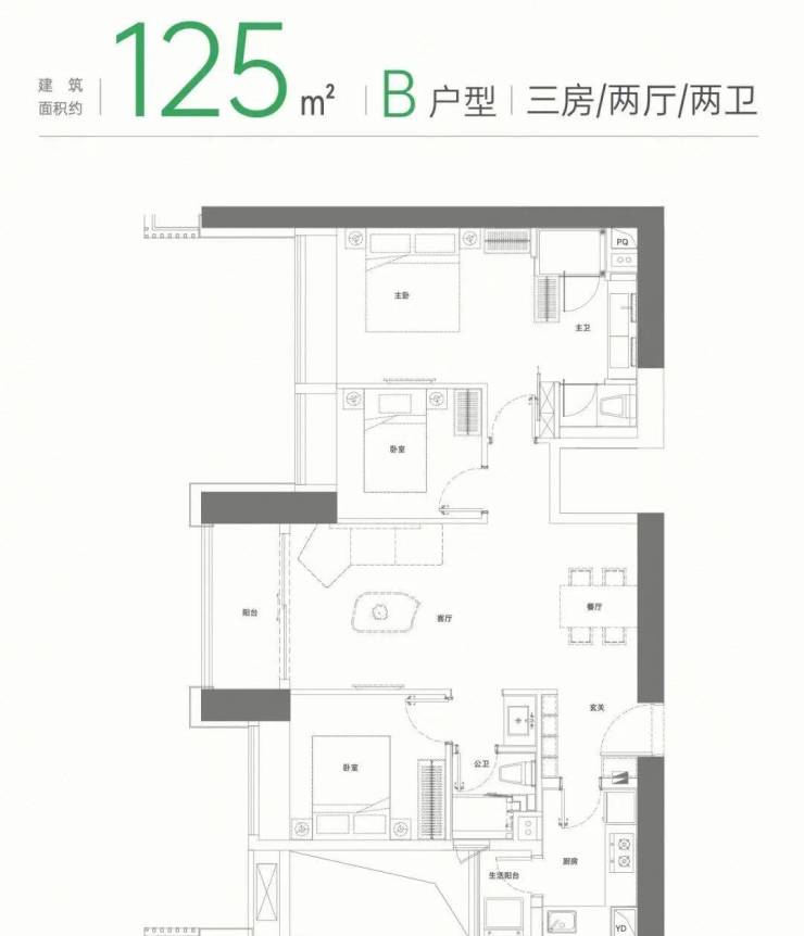 125㎡三房:户型多样,不同朝向均有采光。设置入户玄关,兼具隐私和收纳功能。飘窗和阳台拉开居住视野,主卧私享功能完备。LDK一体化设计打造无边界、社交化的餐客厨系统,让居民在烹饪、用餐和娱乐中都能感受到家的温馨与舒适。
