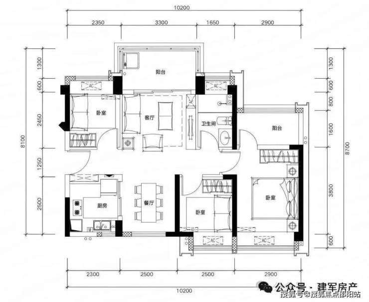 81㎡三房两厅两卫,空间利用极致,功能齐全。