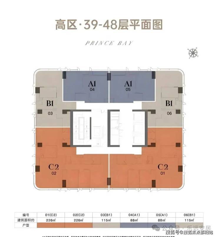 •建筑形态:194米超高层塔楼,共50层,分为低区(9-38层)、高区(39-48层)及顶层(49-50层),梯户比从低区4梯8户到顶层4梯4户逐级优化。