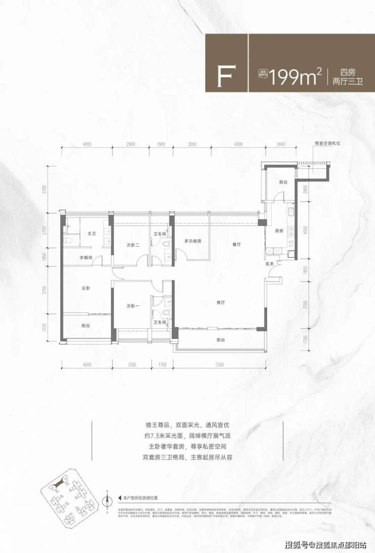 项目由5栋30-31层的住宅组成,呈围合式布局,这种设计不仅创造了中央景观园林,更保证了多数户型都能享有良好的采光和视野。特别是位于小区最北边的4栋一、二单元,作为楼王单位,坐落于园林正中央,仅为3户设计,预示着其宽敞的户型布局。