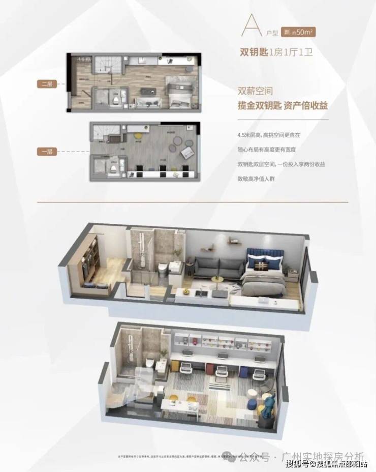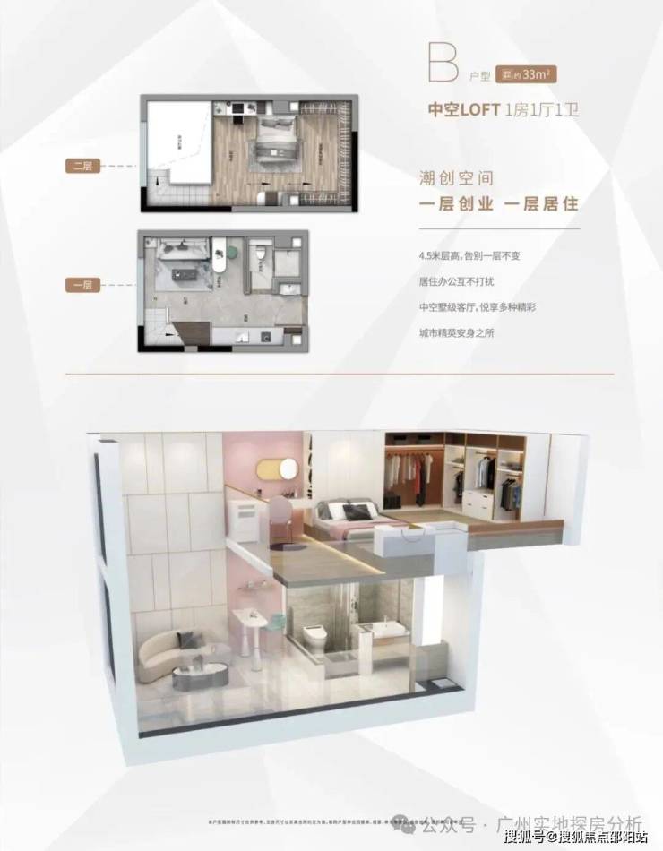 投资:33㎡小户型(总价100万起),优先双钥匙设计(可分租两户)。