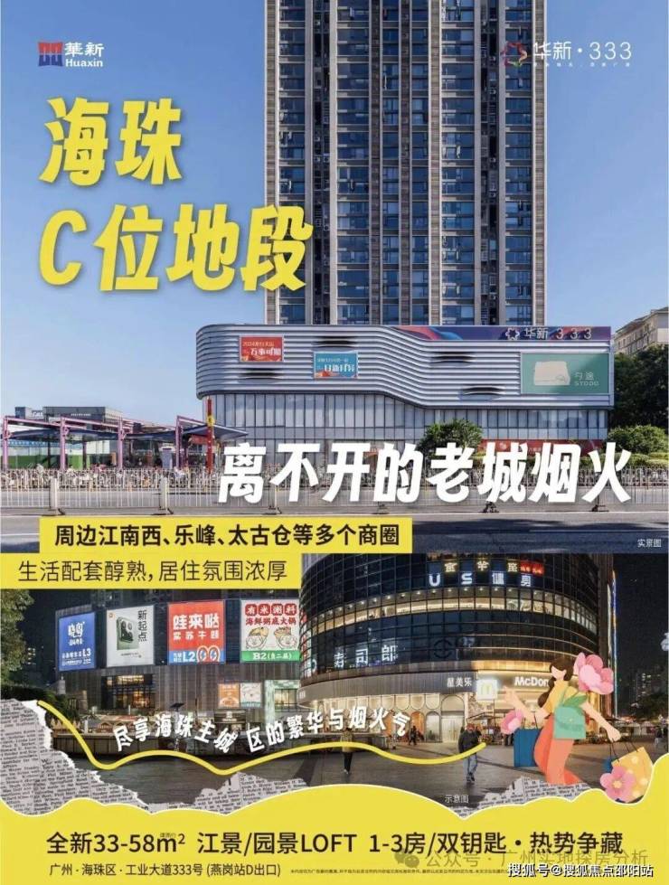 华新方圆333(华新方圆·333)是广州海珠区燕岗地铁上盖的50年产权公寓项目,主推33-58㎡复式LOFT,精装现楼销售。核心分析如下: