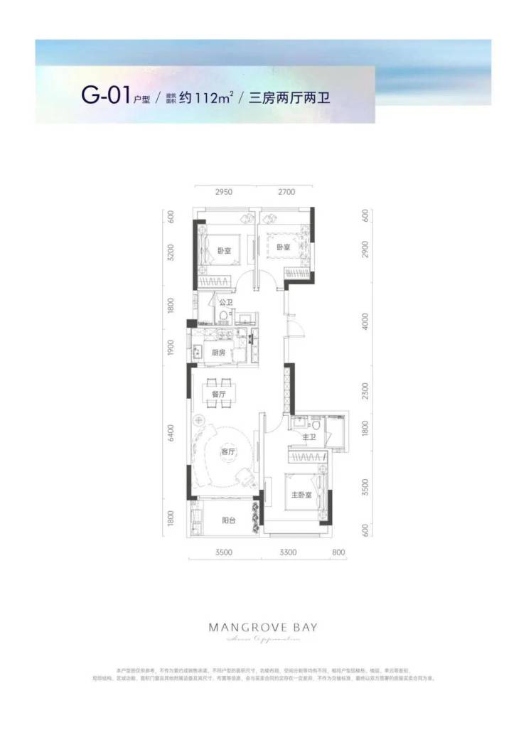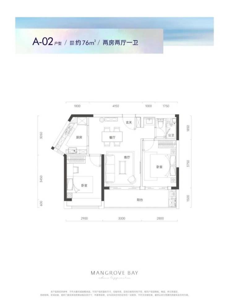 A02户型76平2房2厅1卫:房间和客厅朝南向,采光充足;约5.8米开阔观景阳台,俯瞰红树林自然生态;动静干湿自然分离,生活有序互不干扰。F01户型93平3房2厅1卫:客厅、餐厅连通阳台,自然采光充足;宽景竖厅,空间开阔;主卧独立卫生间,隐私雅奢生活;动静干湿分离。G01户型112平3房2厅2卫:同样拥有客厅、餐厅连通阳台的设计,自然采光充足;全屋飘窗,尽享超大采光面;主卧独立卫生间;动静干湿分离。C03户型134平4房2厅2卫:方正紧凑格局,合理精研每一寸空间;独立私家书房;约6.6米宽阔景观阳台;客厅、餐厅连通阳台;主卧飘窗。