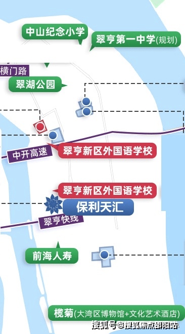 深中通道,实现深中同城 保利天汇距离深中通道出口仅2 KM,保利天汇左岸(二期)距离深中通道出口仅 1 KM。深中通道预计2023年开通,开通后到深圳前海将从原来的2个多小时缩短至20min,实现深中生活零距离。
