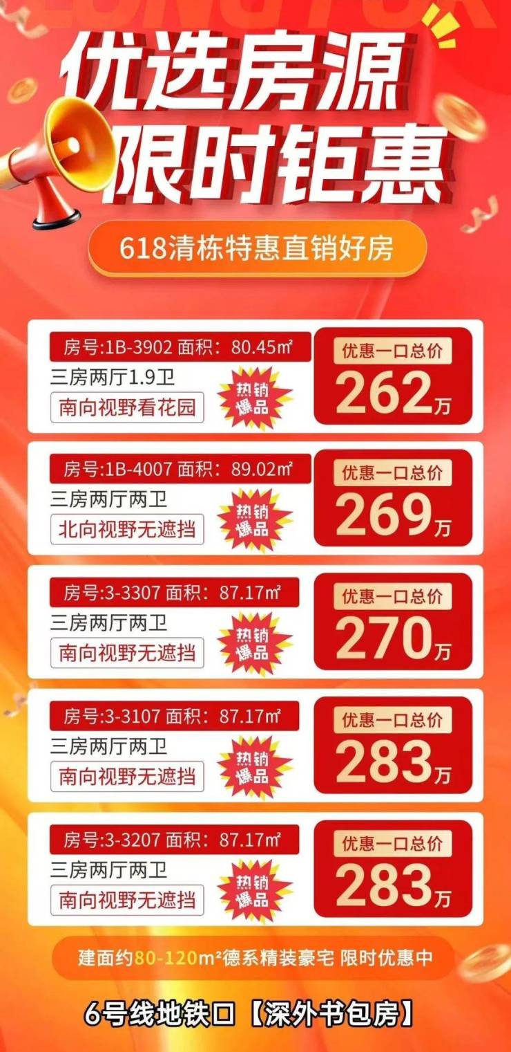 价格:单价3.5万起,三房主力260-340万,四房主力400-500万