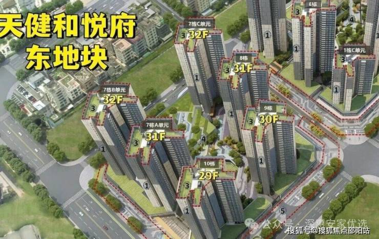 这次推售的天健和悦府东地块,总占地面积约2.26万㎡,总建筑面积约14.43万㎡,计容建筑面积约10.37万㎡,容积率4.5,绿化率40%,共由6栋总高29-32层的住宅组成,其中7栋A单元住宅31F,7栋B/C单元住宅32F,8栋住宅31F,9栋住宅30F,10栋住宅29F,规划有公交首末站,社区菜市场。
