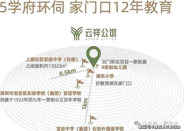 初中学区划分在宝安中学(集团)石岩外国语学校(初中部)、宝安区实验学校(集团)官田学校(初中部)、湖光学校(初中部)、新安中学(集团)龙田学校(初中部)组成的共享学区。另外家门口也有上屋初级中学在建设中。