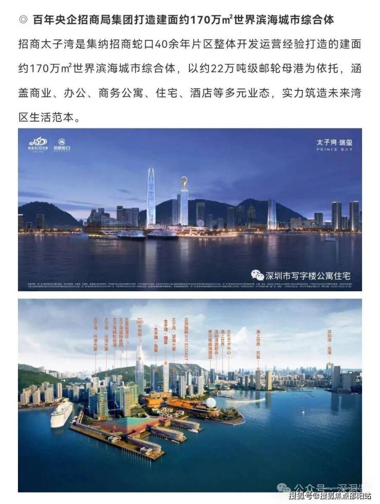 招商太子湾位于深圳蛇口,据守“前海-蛇口-深圳湾”黄金三角湾区的重要位置,“特区+一带一路+自贸区+大湾区+先行示范区”多重国家战略叠加,太子湾肩负时代重要使命。(信息来源:第一现场微信公众号、深圳特区报微信公众号、蛇口电视台微信公众号)