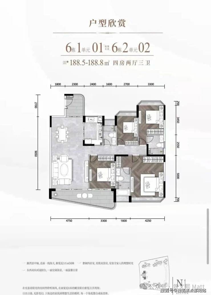 户型优势:明厨明卫,通透明亮,南北双阳台,专享电梯入户,入户花园的多变空间,纯270°看海,景观面阔达近13米,海景主卧、海景书房、海景卫浴,皆是海的享受稀缺的环形阳台,270°海景面宽达13米多功能的景观露台,茶室、书房总相宜南北通透,海景客厅,主次卧全明飘窗看海 标准四房,藏下三代同堂的其乐融融南北双阳台,全明空间,无边际一线观海近12米海景面宽,270°多功能阳台,近35平米专属主人套房,私密从容海之阔,园之静,主卧通透双景观面