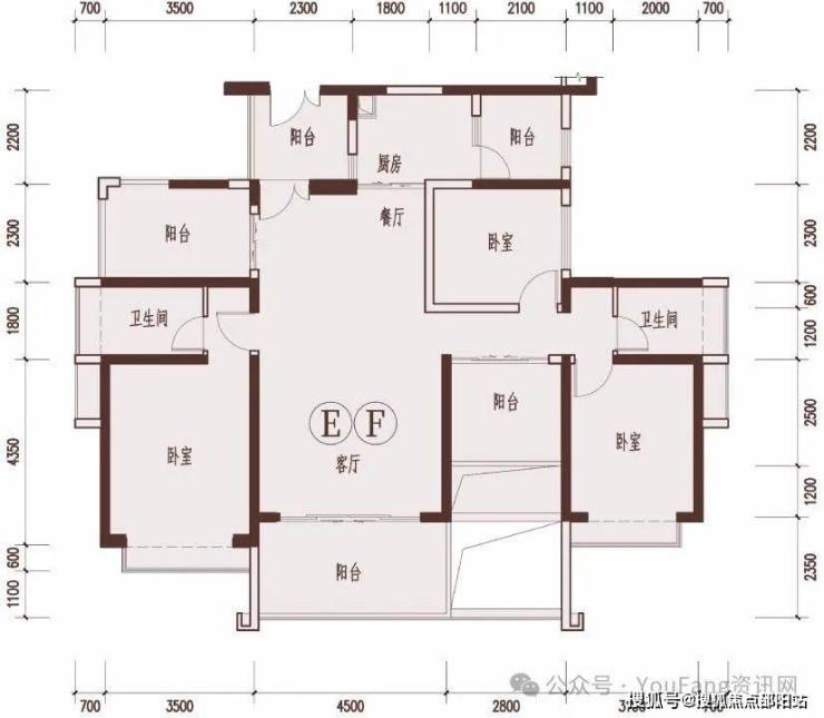 4栋EF户型奇数层128㎡ 三房两厅两卫五阳台